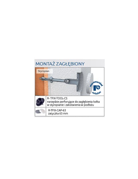 Montážna koncovka RawlPlug R-TFIX-TOOL-CS je plastový hrot na montáž zapustenej zástrčky R-TFIX-8SX, ktorý ju súčasne namontuje a vyfrézuje otvor pre zástrčku. Na výber sú tri typy: