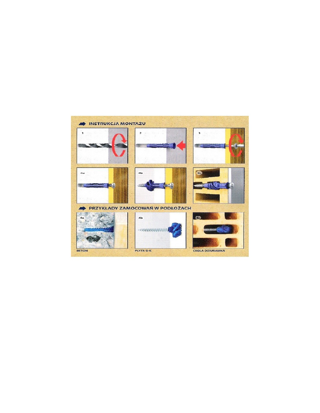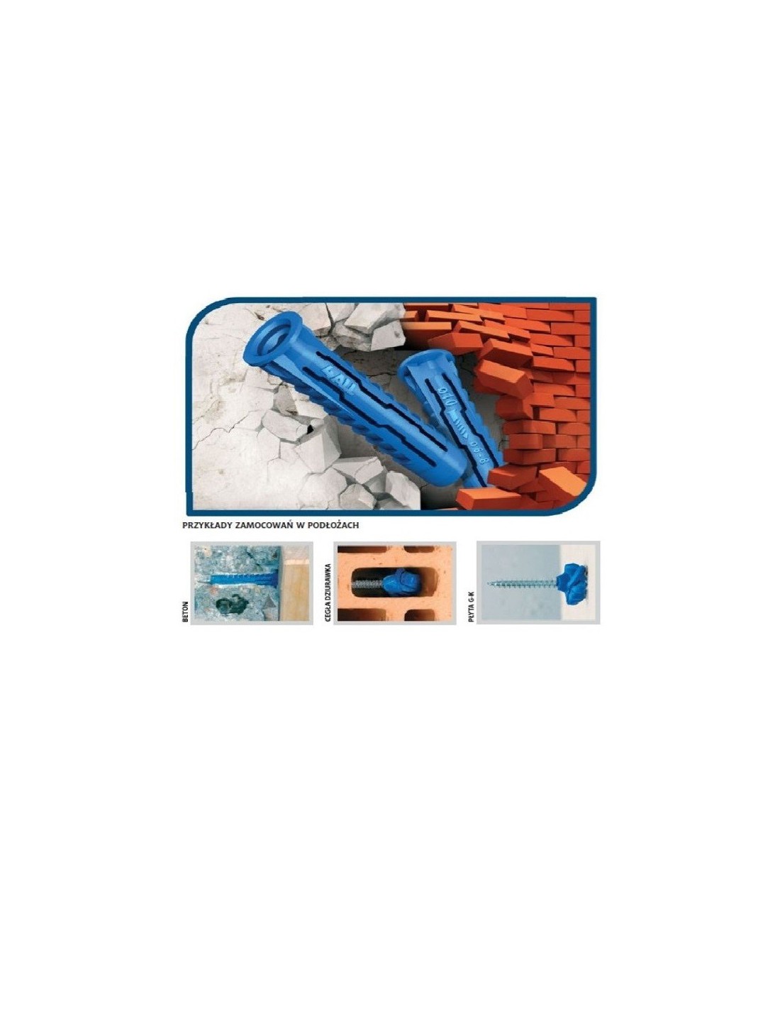 • antirotačné krídelká zlepšujú priľnavosť hmoždinky na širokej škále podkladov, vrátane mäkkého muriva a sadrokartónu.