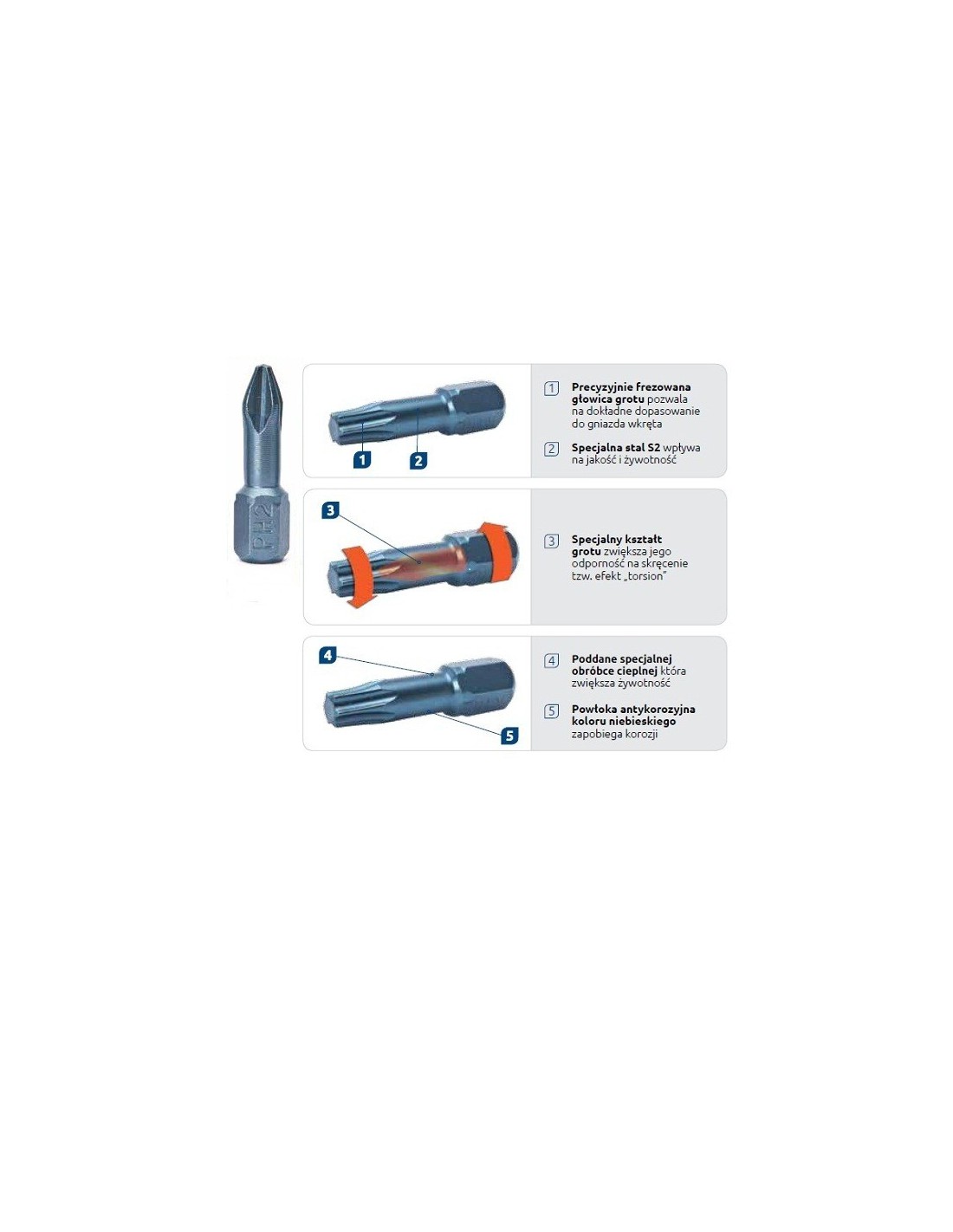 3. špeciálny tvar hrotu zvyšuje jeho odolnosť proti skrúteniu, tzv efekt "TORSION".