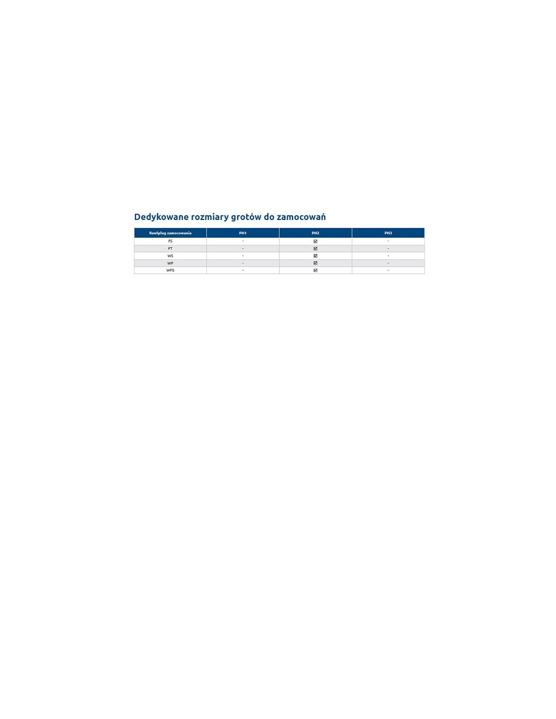 PRÍKLAD ZOZNAMU SKRUTKOV NA UPEVNENIE S PH2: