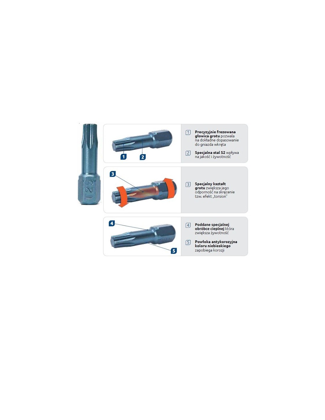 3. špeciálny tvar hrotu zvyšuje jeho odolnosť proti skrúteniu, tzv efekt "TORSION".