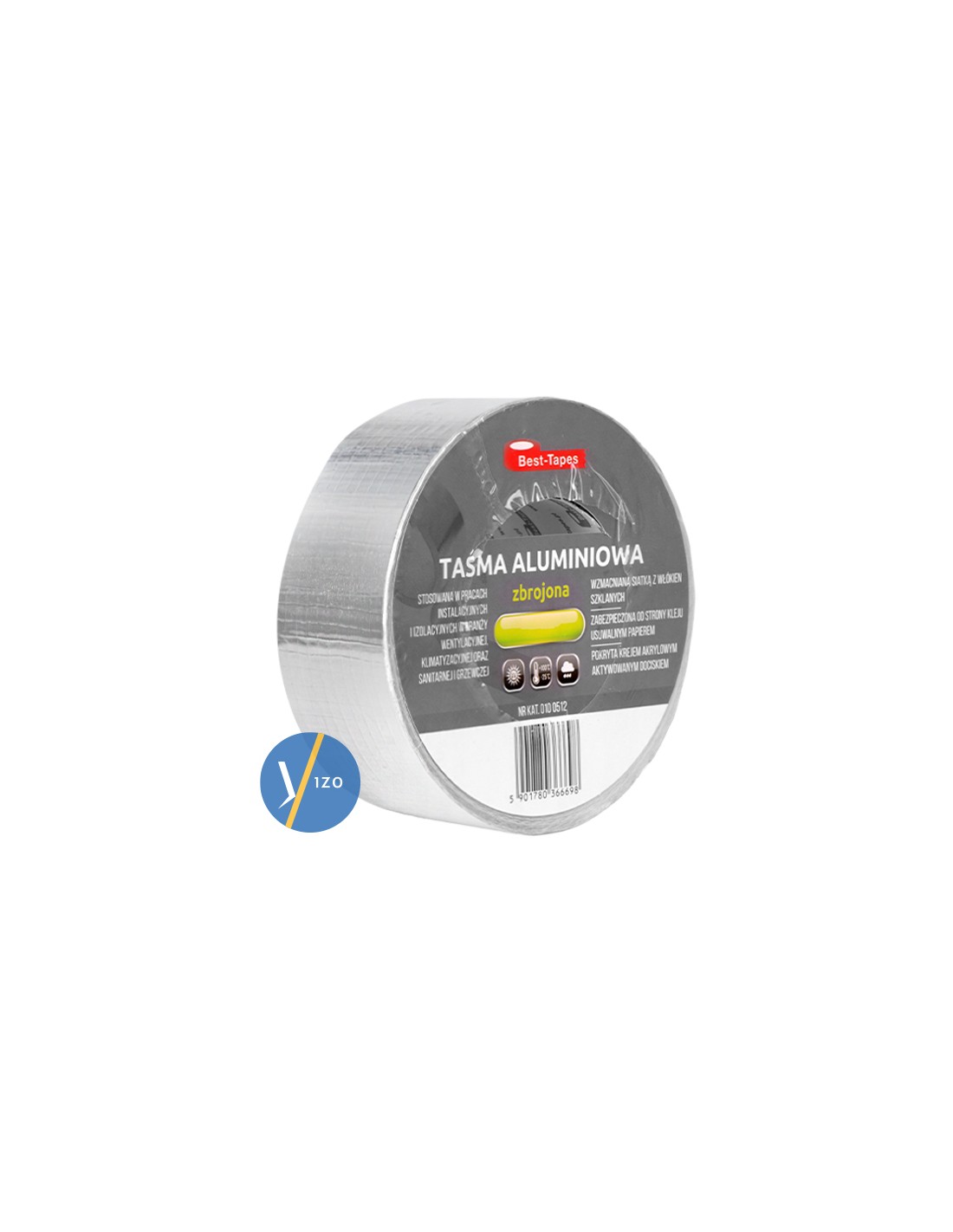 Hliníková vystužená páska 48 mm vystužená sieťovinou zo sklenených vlákien 5x5 mm je jednostranná páska používaná na parotesné lepenie a utesňovanie presahov a prepichov v metalizovaných a hliníkových parozábranných a tepelnoizolačných fóliách. Vhodné aj pre inštalačné a izolačné práce v nasledujúcich odvetviach: vetranie, klimatizácia a kúrenie. Používa sa aj ako izolátor pre parné potrubia. Páska v pevnom 1-palcovom plastovom obale. Oproti štandardnej metalizovanej páske má páska lepšiu priľnavosť, čo umožňuje jej použitie v náročných podmienkach (nízka teplota, vlhkosť). Má tiež väčšiu mechanickú pevnosť.
