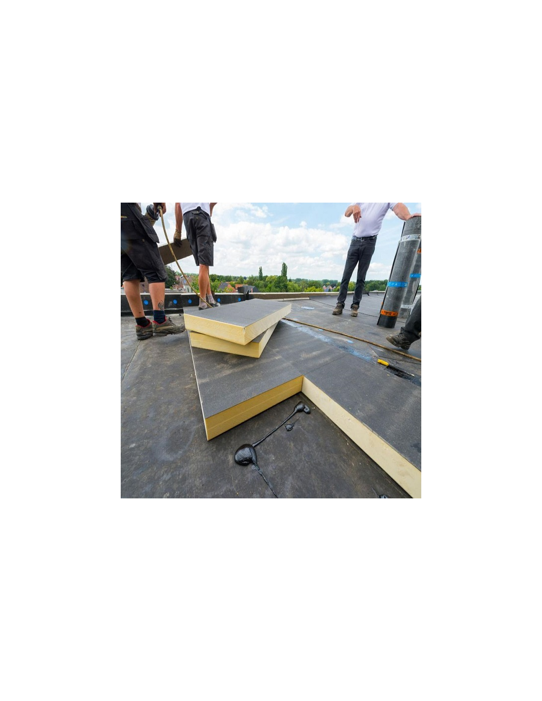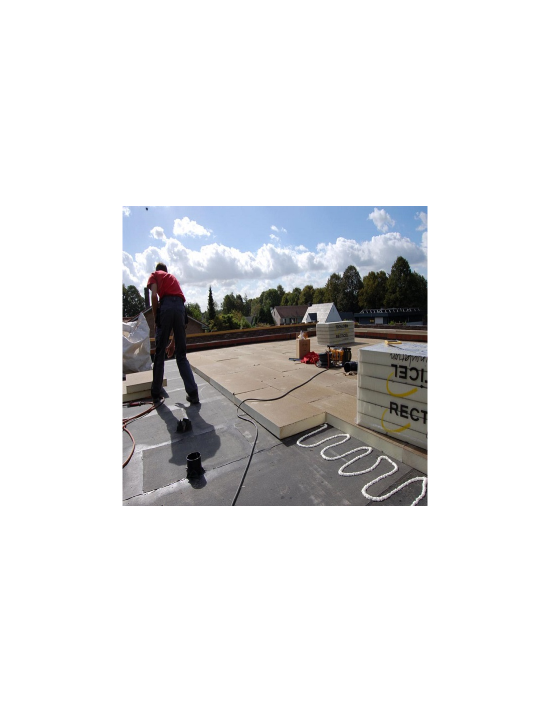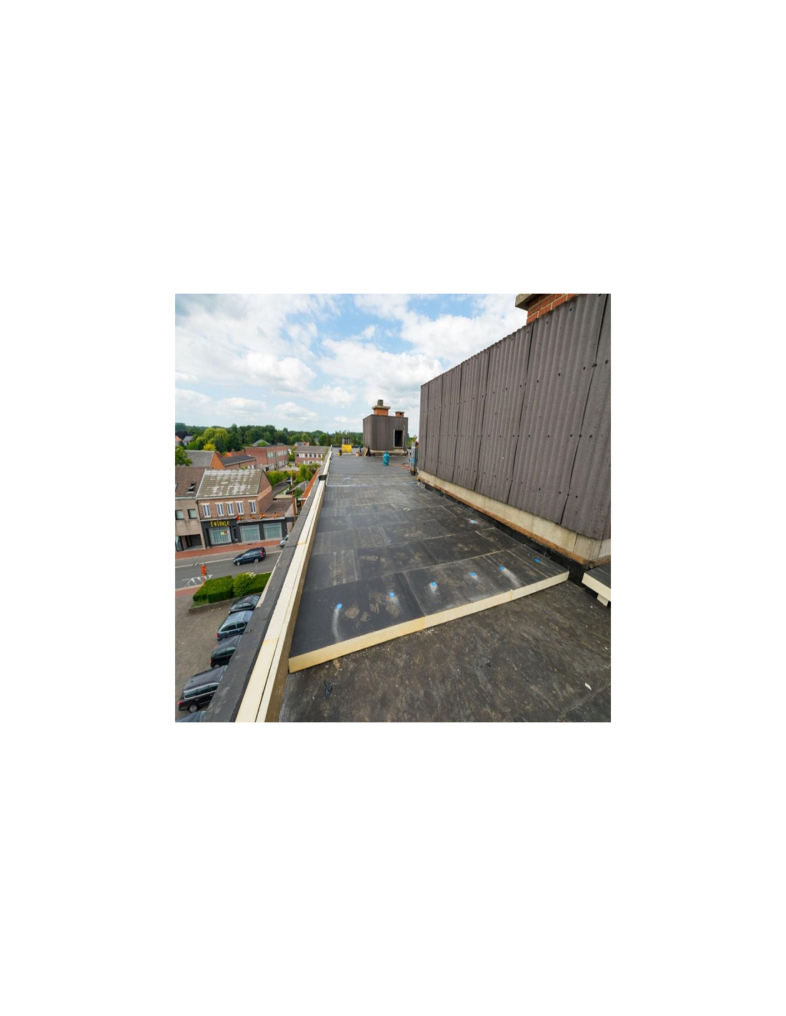Polyuretánová doska Recticel EUROTHANE Bi-4 typ 80B hrúbky 45 - 60 mm je tvrdá , spádovaná, polyizokyanurátová tepelnoizolačná doska s obojstranným bitúmenovým sklovláknitým obkladom - bez kropenia, na izoláciu plochých striech a terás . Označené značkou kvality KEYMARK .