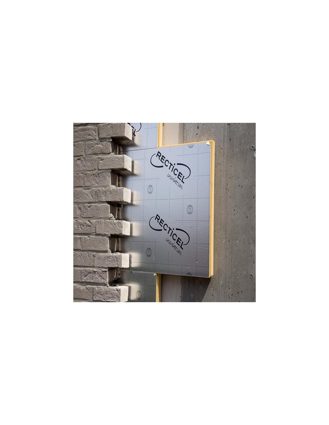 Polyuretánová doska Recticel Eurowall # 100 mm je jadrová doska PIR so sivou parozábranou z laminátu, pozostávajúca z sulfátového papiera a hliníkových fólií, kde jedna strana je matná a druhá strana je reflexná. Reflexná strana by mala smerovať do vzdušného priestoru. Produkt je určený pre energeticky úspornú a pasívnu výstavbu.