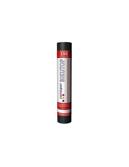 Swisspor BIKUTOP podkladová plsť 250 PYE PV250 S47 je zvárateľná podkladová asfaltová plsť modifikovaná SBS na báze polyesterovej netkanej textílie. Aplikácia zváraním a/alebo mechanickým upevnením má nasledujúce parametre: