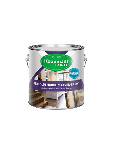 Koopmans PERKOLIN HARDE MATVERNIS WV je akrylovo-uretánový lak na vnútorné použitie, najmä na kuchynské pracovné dosky, parapety, stoly a stolárstvo dverí a okien. Nezmení farbu dreva. Špeciálna receptúra prípravku dodatočne chráni drevo pred zafarbením spôsobeným pôsobením živíc a tanínov v ňom obsiahnutých. Vďaka tomu si drevo zachováva svoju prirodzenú farbu po celé roky. Produkt sa ľahko aplikuje, s nedráždivou vôňou zaisťuje pohodlie pri používaní. Vytvára trvanlivé, vysoko oteruvzdorné nátery. Produkt Bio radu. Je určený aj na lakovanie dreva vo farebnom systéme ako finálna vrstva (dokonale sa kombinuje s akrylovými aj alkydovými produktmi radu Nelf / Koopmans). Schválené pre styk s potravinami v súlade s Nariadením Komisie (EÚ) č.10/2011 zo dňa 14.01.2011 (PN-EN 13130-1: 2006)