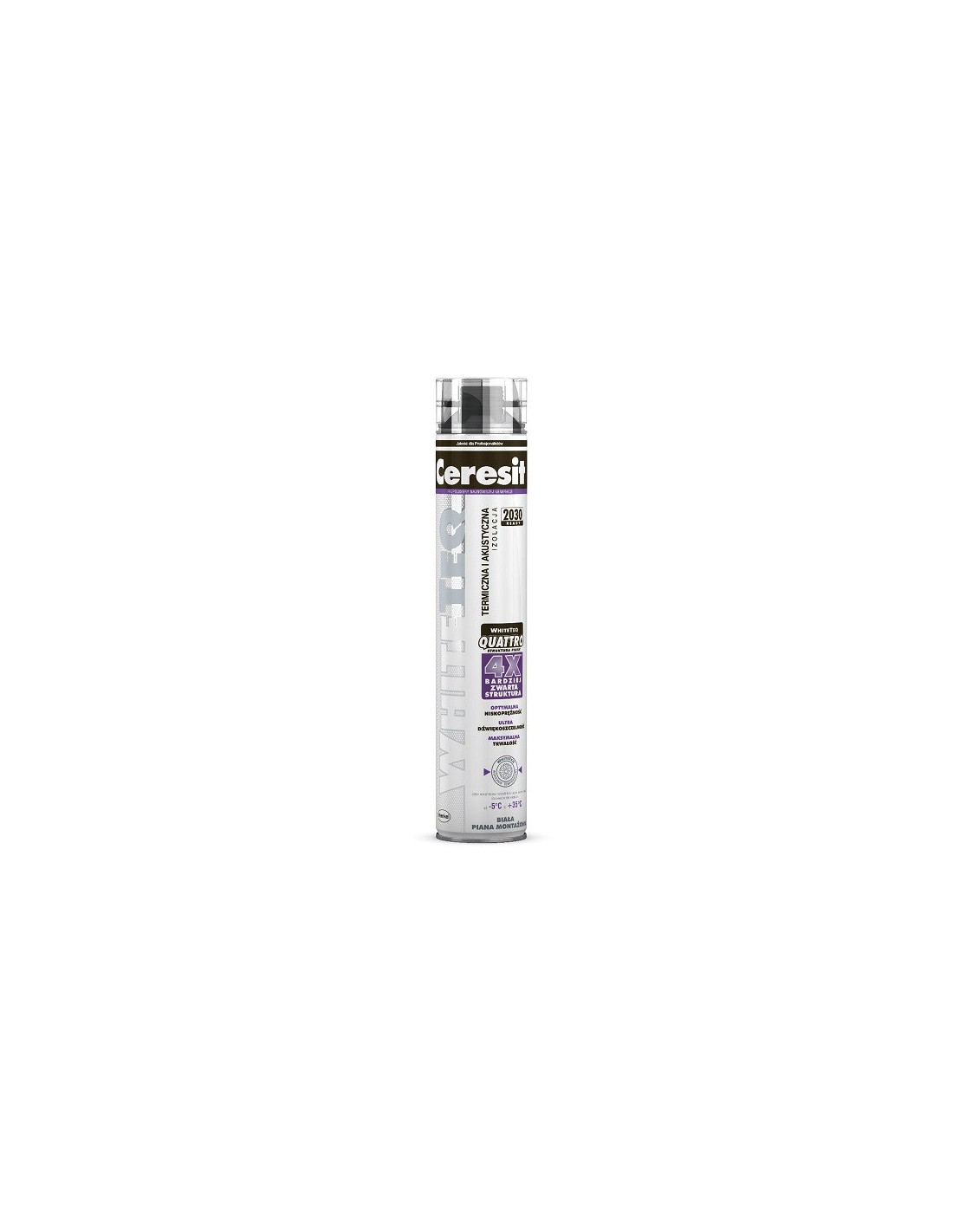 Montážna pena Ceresit WhiteTeQ Quattro je biela montážna pena s nasledujúcimi parametrami:
