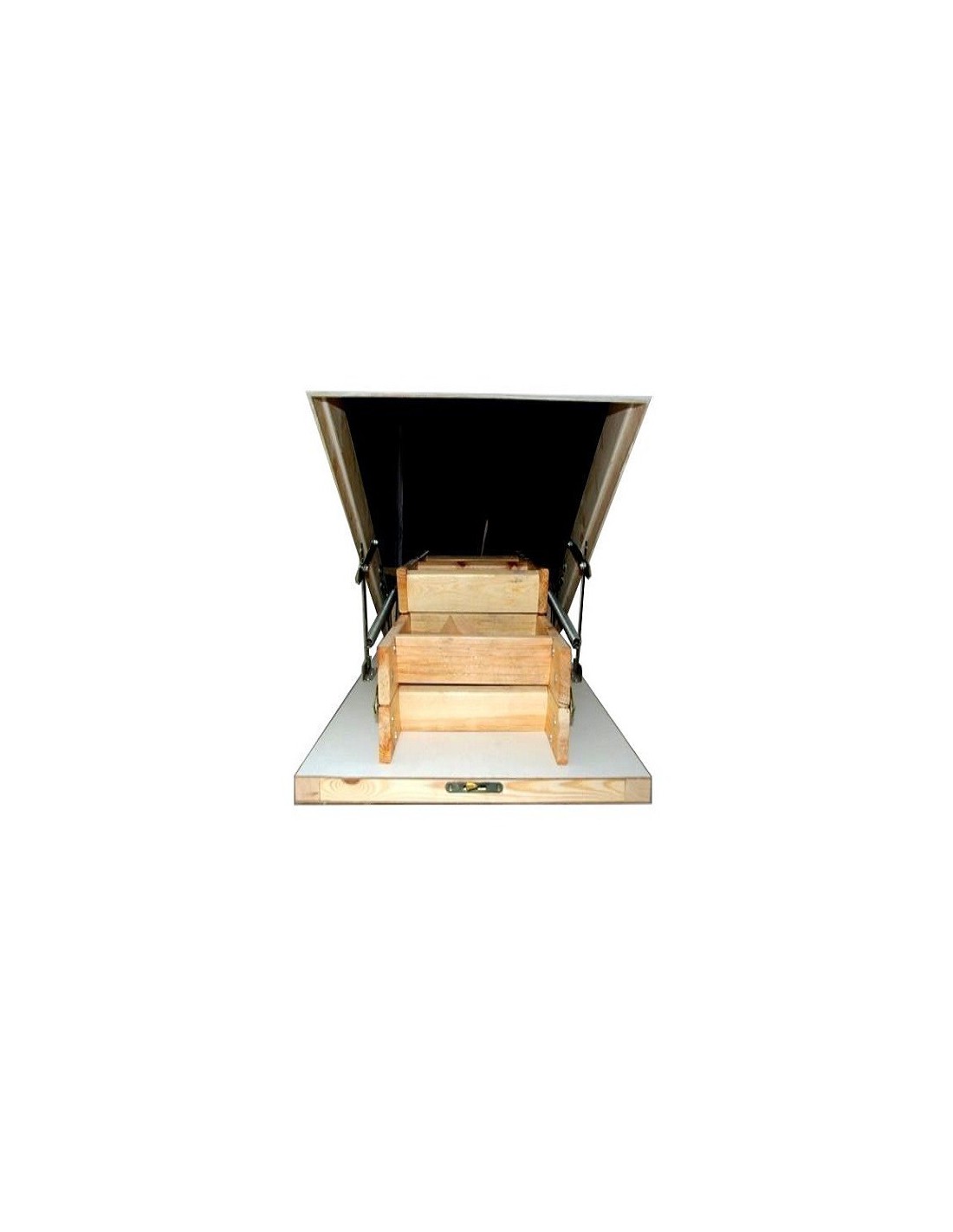 • Poklop - tepelne izolačný, hrúbka 36 mm, obojstranne zakončený bielou HDF doskou. Na vonkajšej strane klapky nie sú viditeľné žiadne montážne prvky. Systém otváracieho mechanizmu uzamkne poklop v úplne otvorenej polohe, čím bráni jeho samozatváraniu pri skladaní a rozkladaní rebríka.