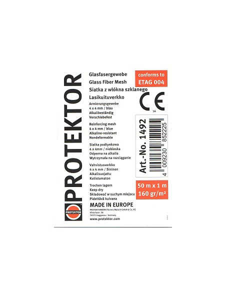 Sklolaminátová mriežka pre tepelnú izoláciu Protekor 1492 je sieťovina vyrobená z kvalitných sklenených vlákien, potiahnutá polymérovou živicou. Vyznačuje sa vysokou odolnosťou voči zásadám. Určené na zhotovenie výstužnej vrstvy v zatepľovacom systéme ETICS. Táto sieťka sa odporúča použiť na miestach vystavených mechanickému poškodeniu (sokly, v blízkosti prednej zóny, vjazdy do garáží, rohy okenných a dverných otvorov).